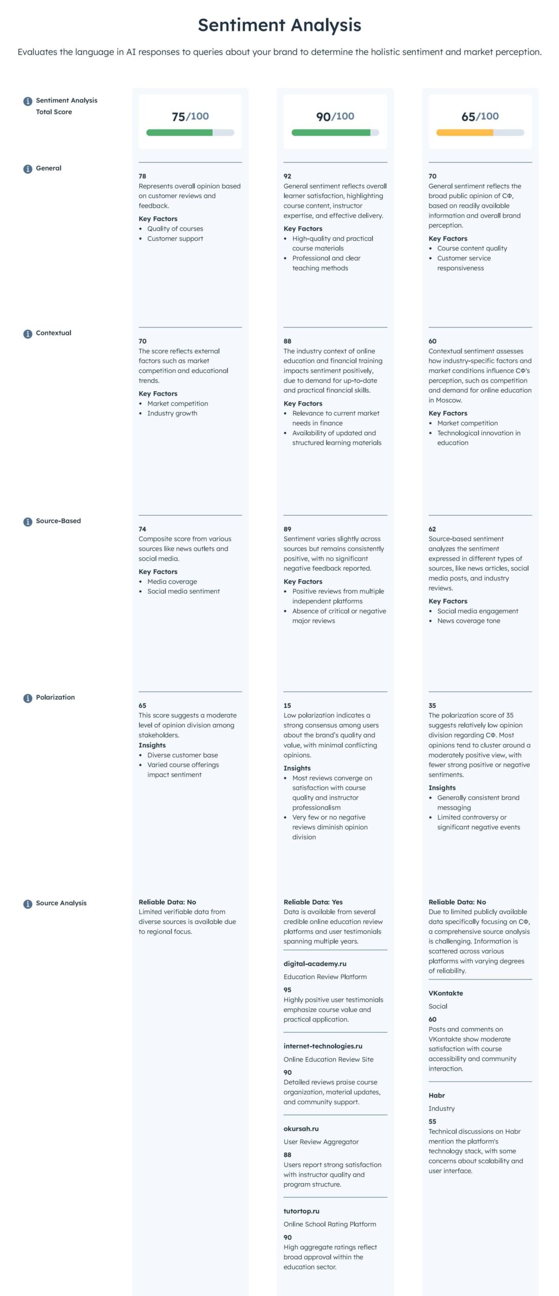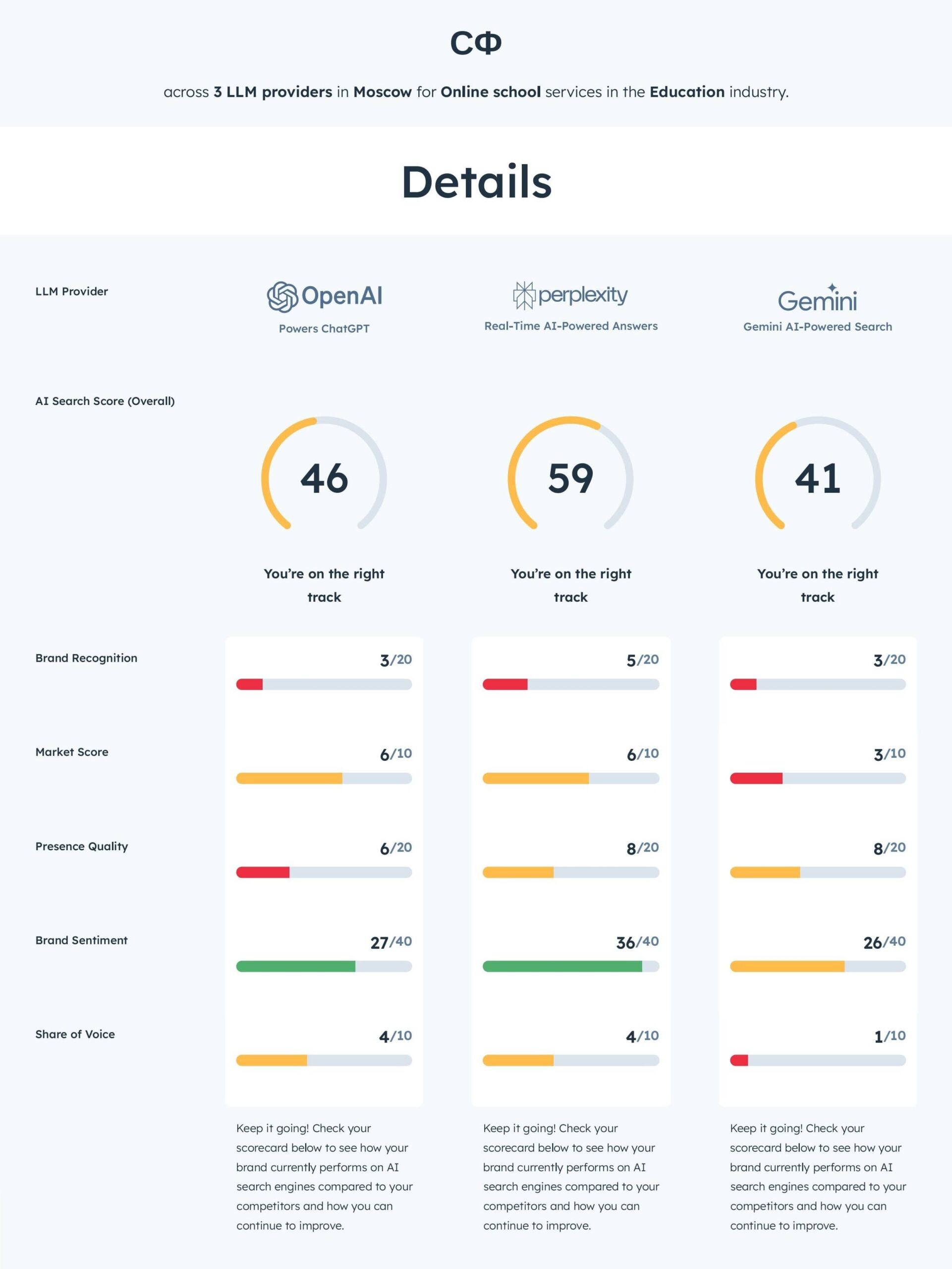 Показатель общей видимости в трех нейронных сетях. Этот показатель оценивает, насколько часто бренд встречается в ответах нейросетей.