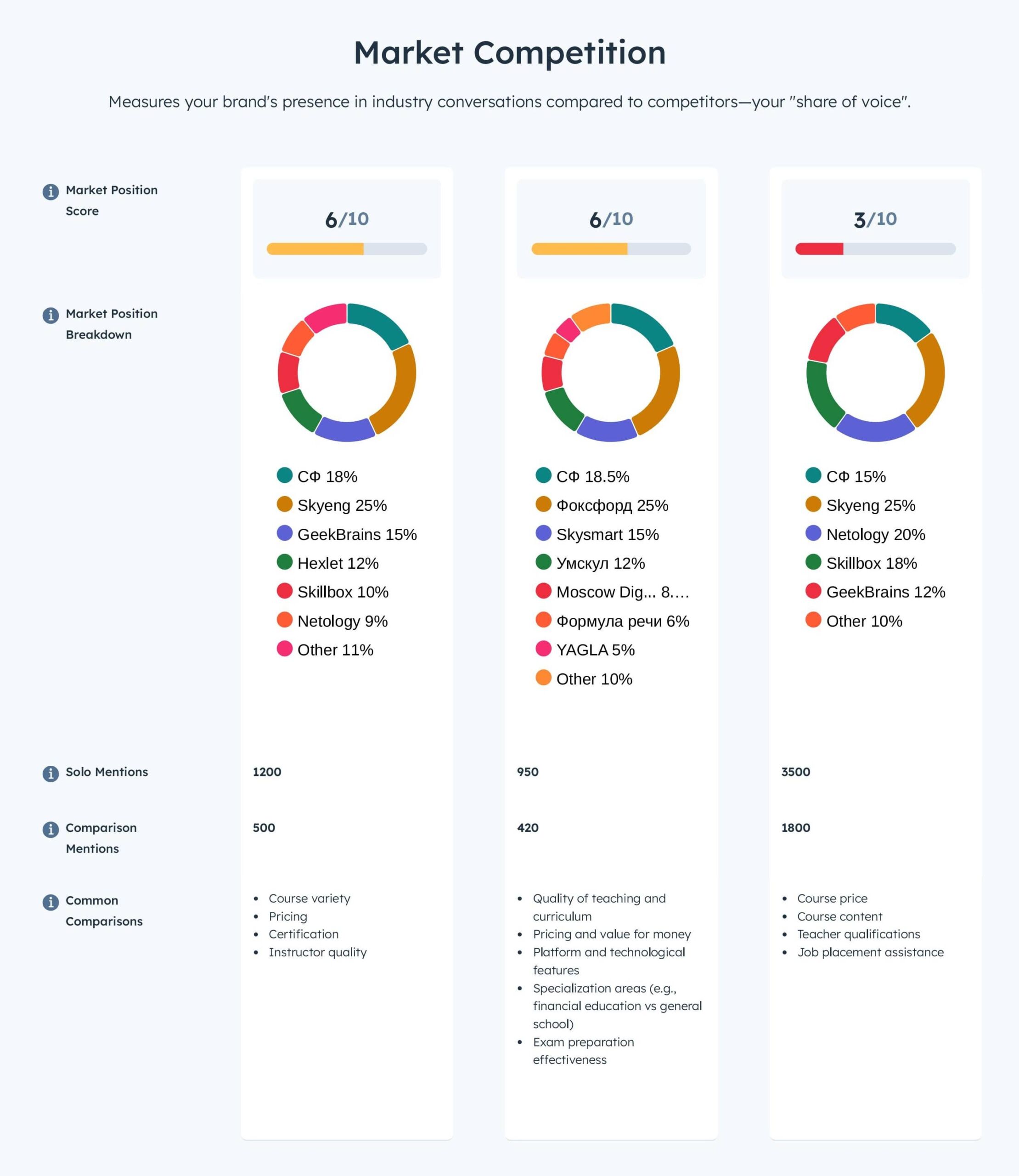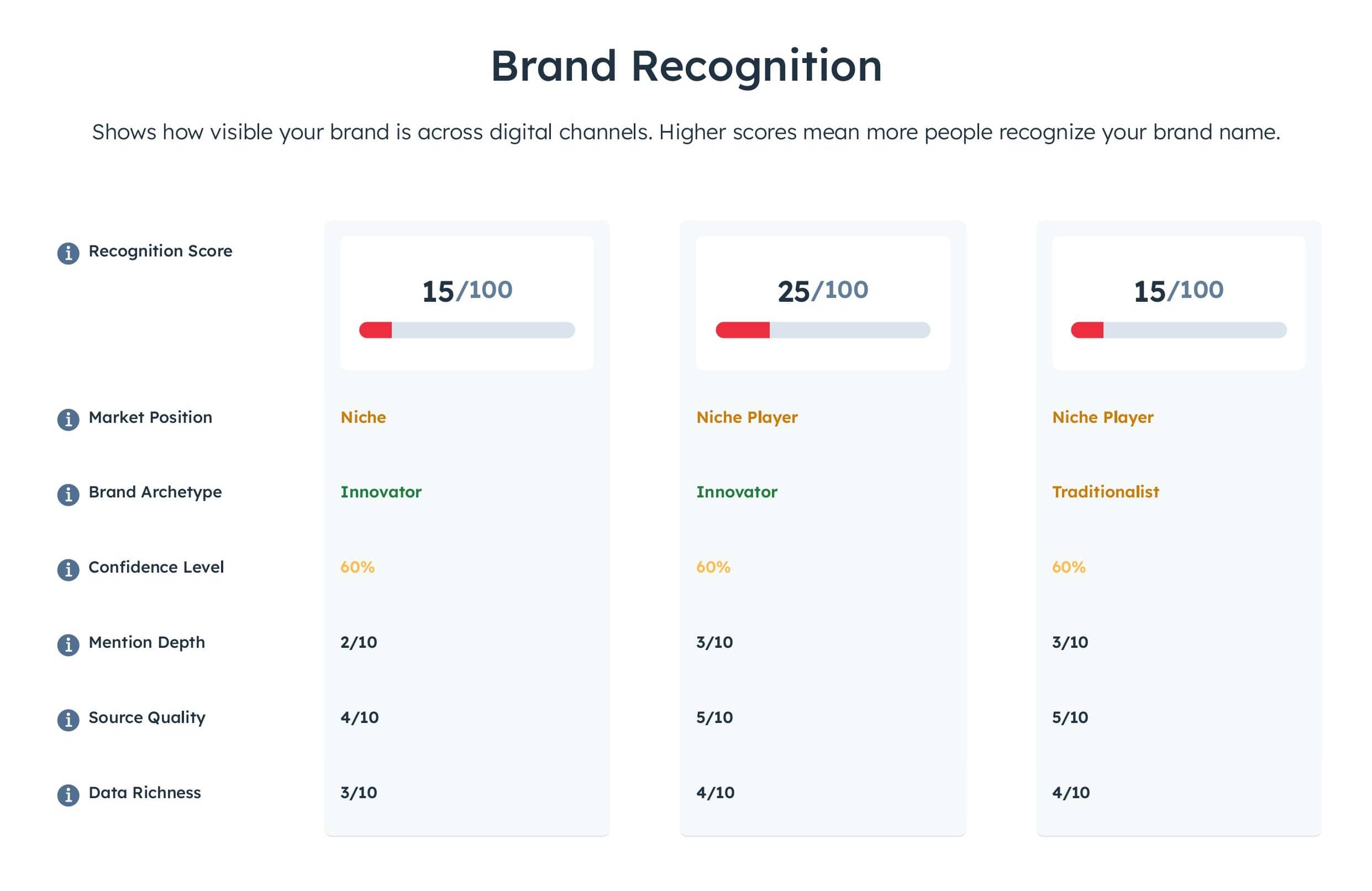 Узнаваемость бренда. Показывает, насколько заметен ваш бренд на цифровых каналах. Чем выше балл, тем больше людей узнают ваш бренд.